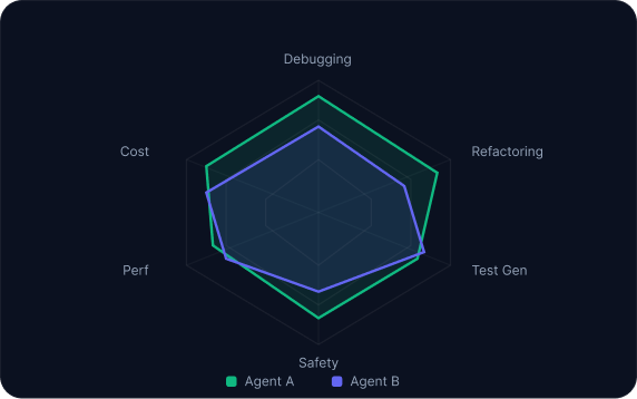 One evaluation platform for performance, cost, compliance, and safety -- across public benchmarks, private suites, and CI/CD integration.